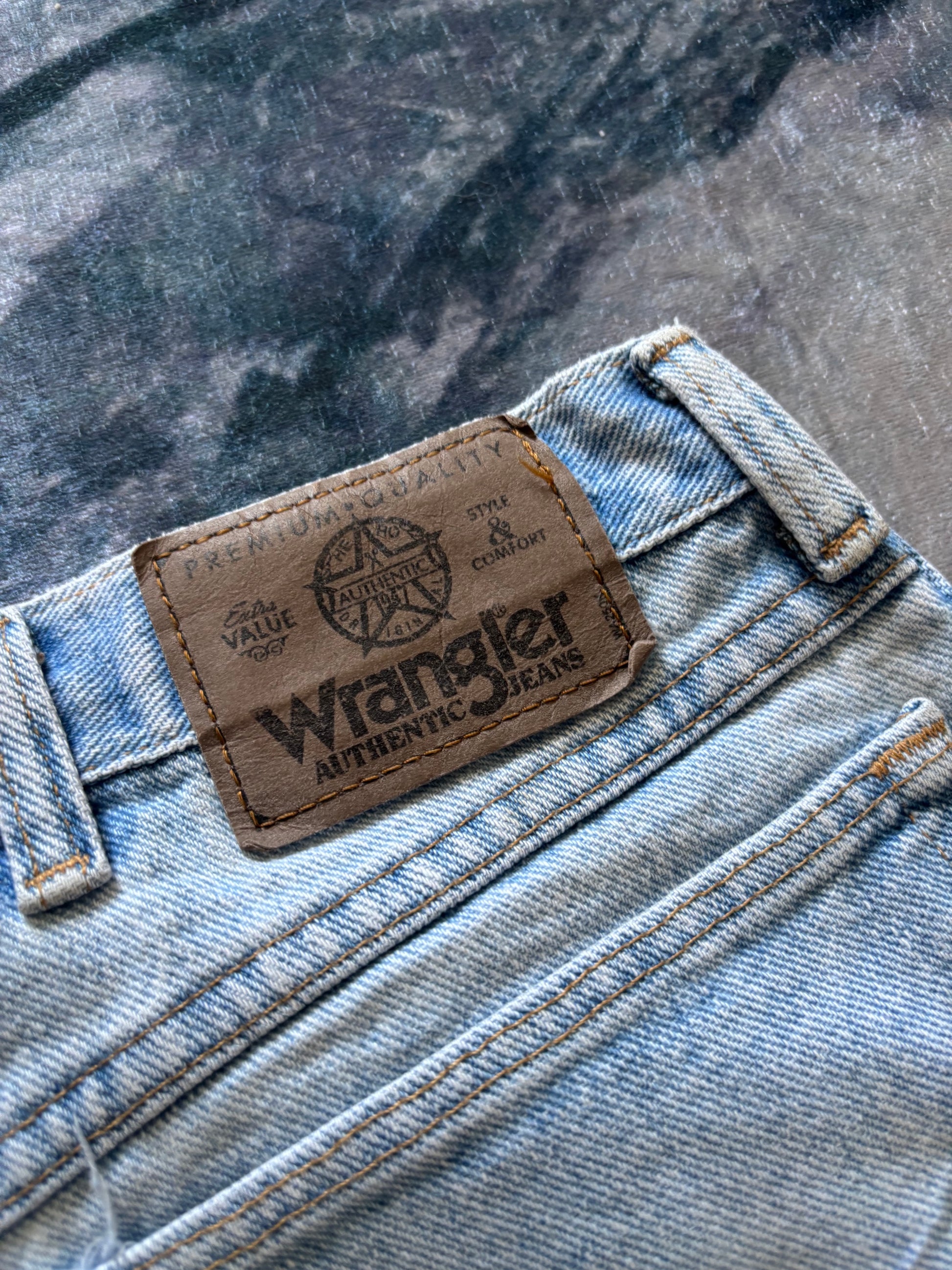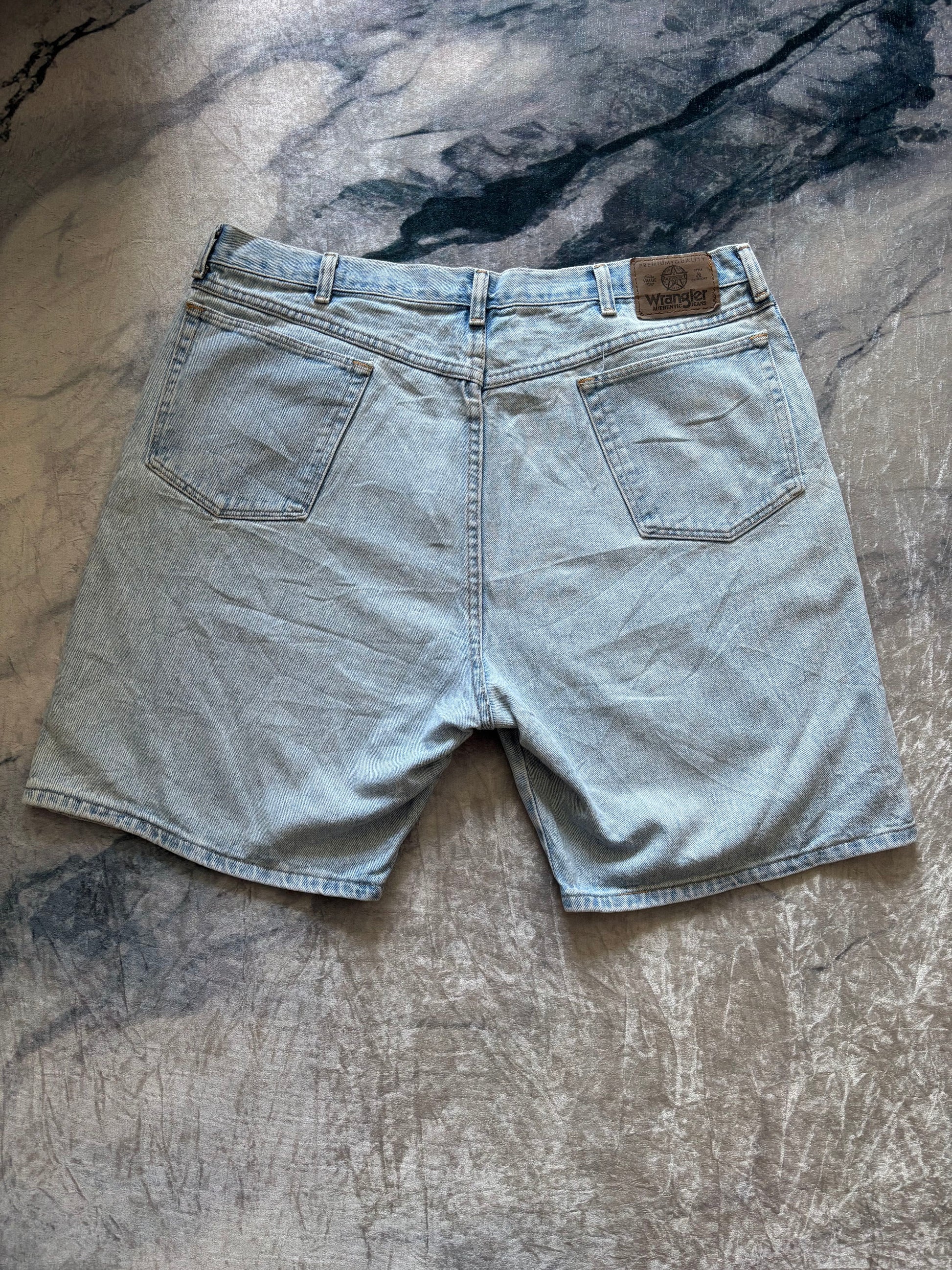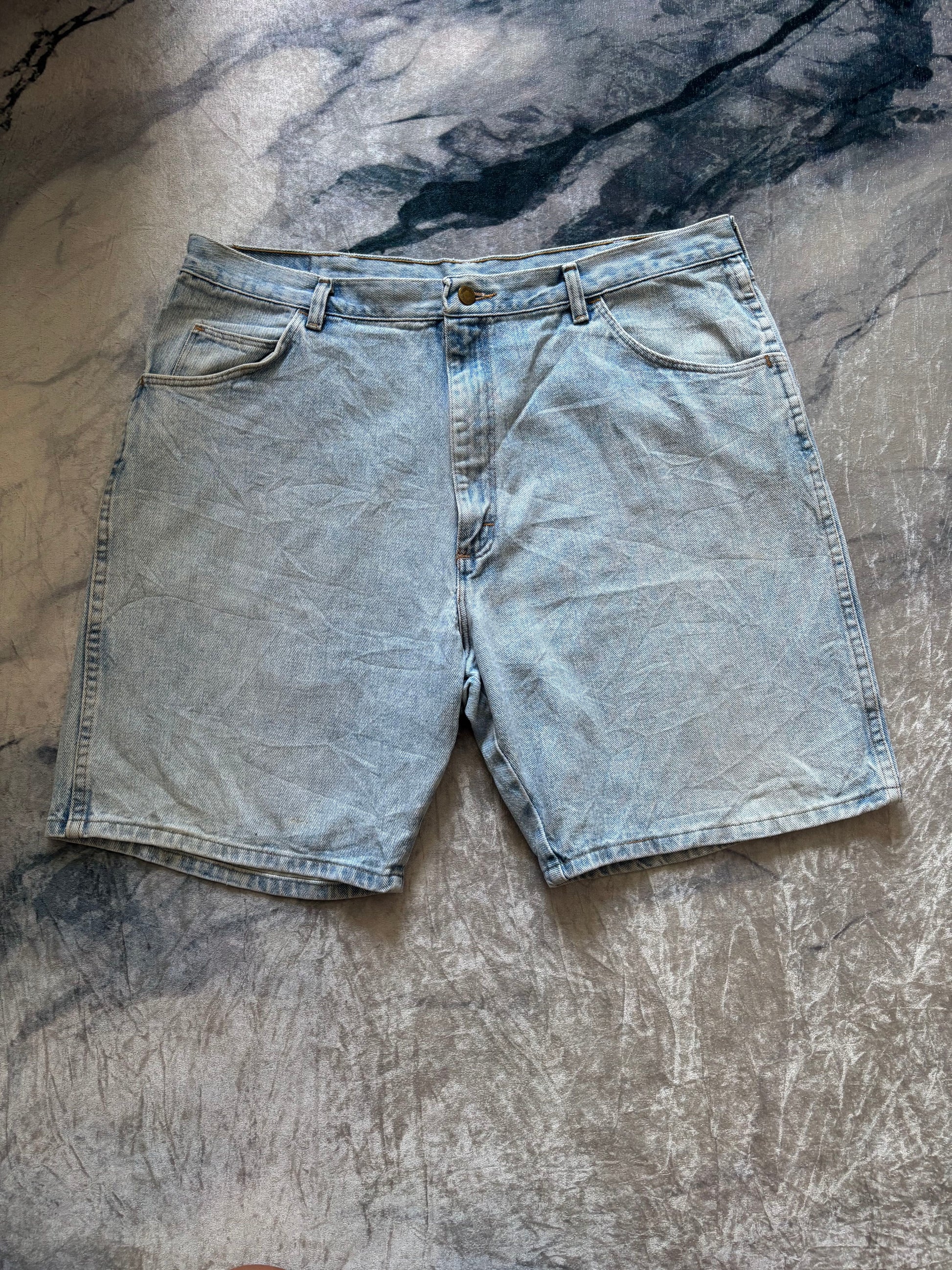 Klassiske Wrangler denim shorts med tidløs pasform og slidstærk kvalitet. Den mellemblå vask og det ikoniske læderpatch bagpå gør dem til et sikkert valg for dig, der vil have autentisk americana-stil og ægte 90’er feel.