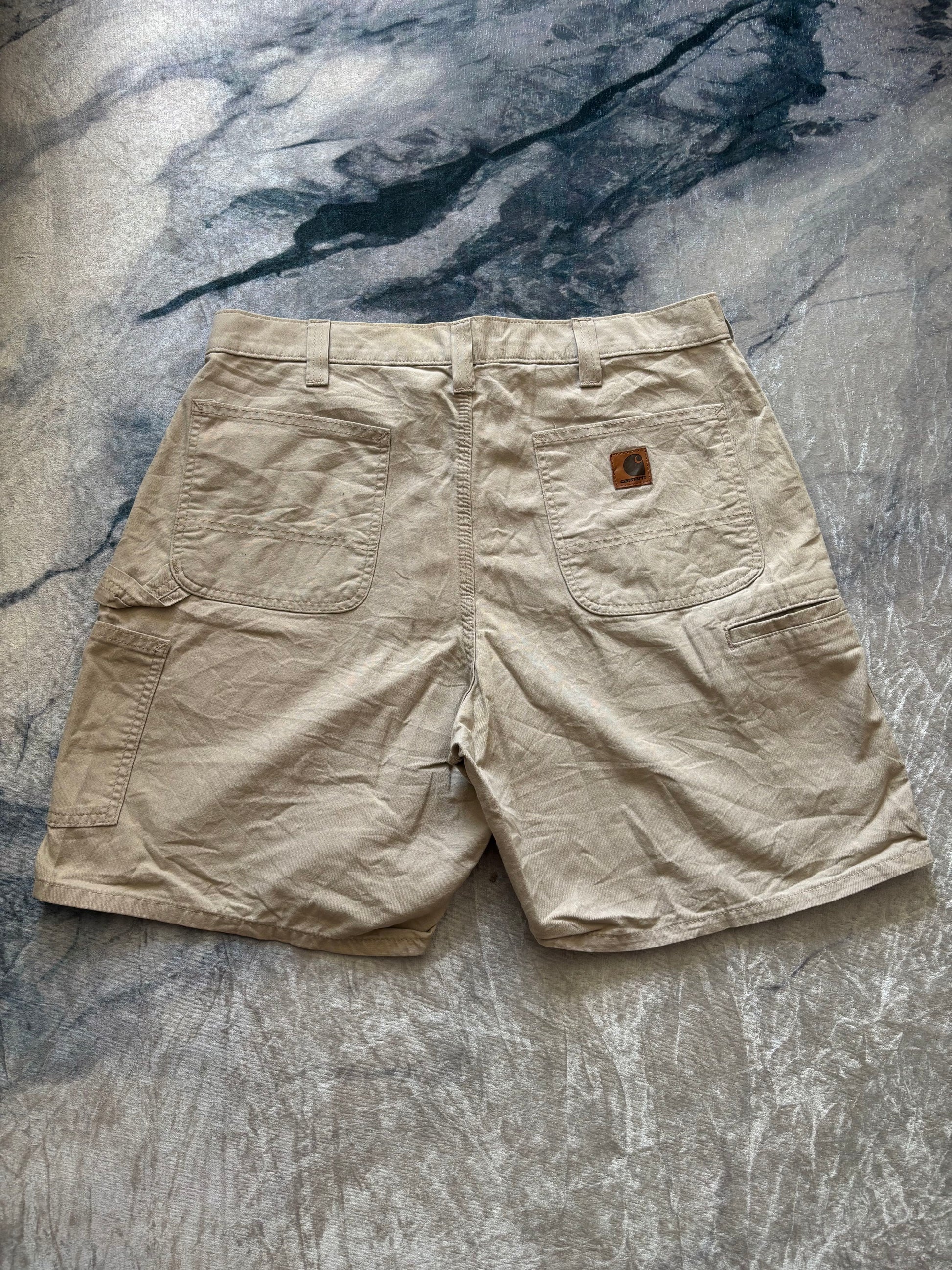 Raw vintage pair of Carhartt jorts in cotton and classic workwear style. Perfect for those who are looking for a casual workwear vibe with an edge. The original fit and hardwearing quality make them both durable and stylish.