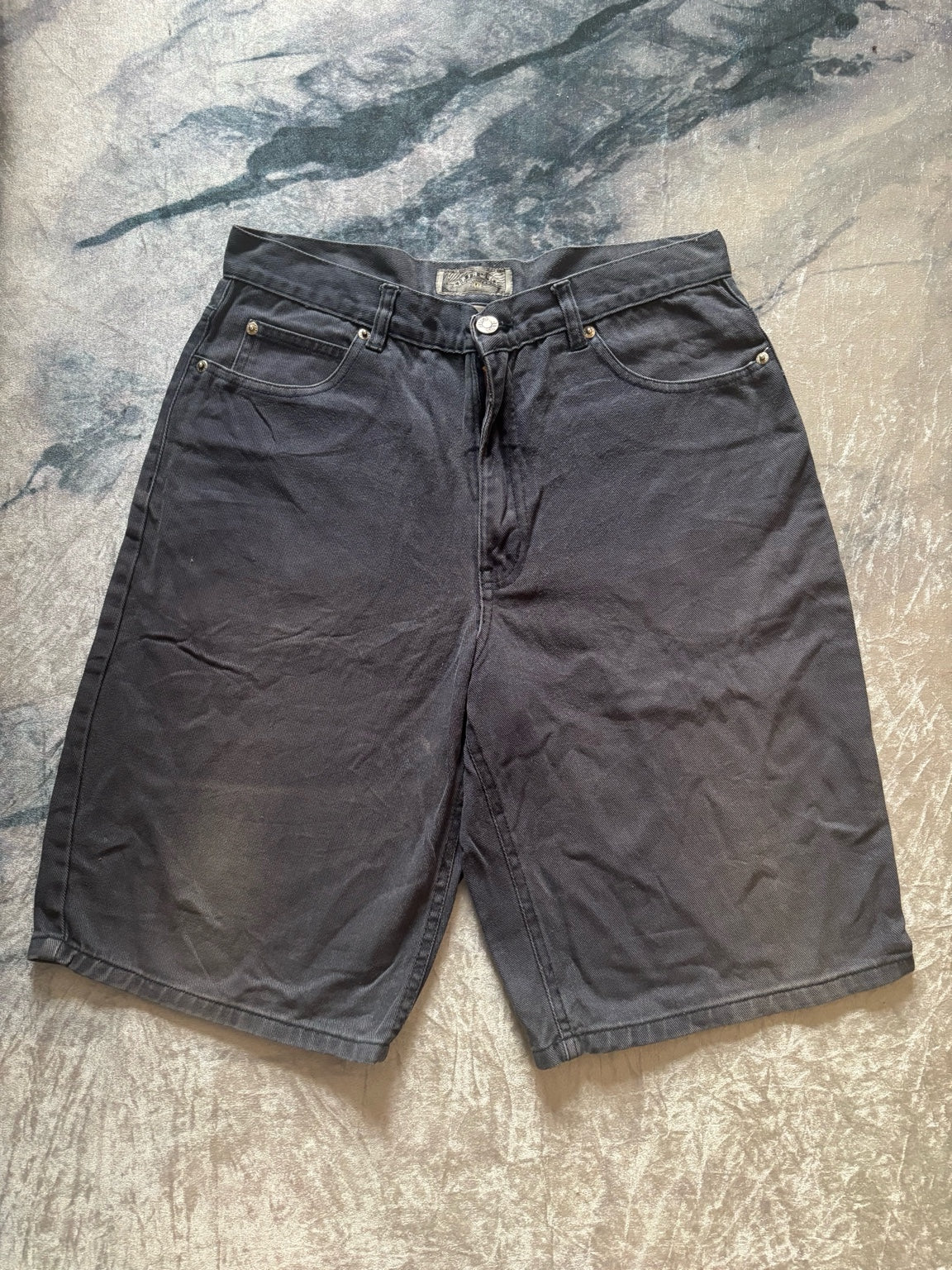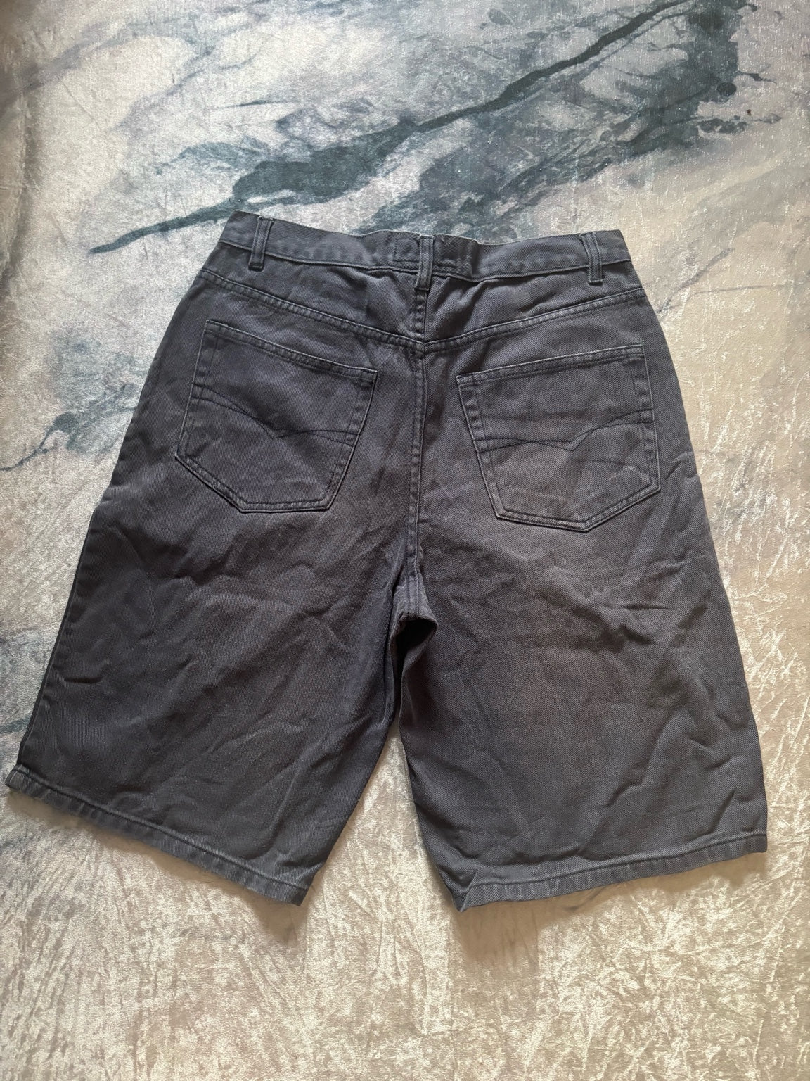 Unique vintage jorts from European JEP SK, made of strong 100% cotton. Washed black/dark grey finish with a perfect worn look and loose fit. Classic 90s vibe with 5-pocket design and clear quality. Perfect for those who want something a little different from Levi's - retro without shouting too loudly.