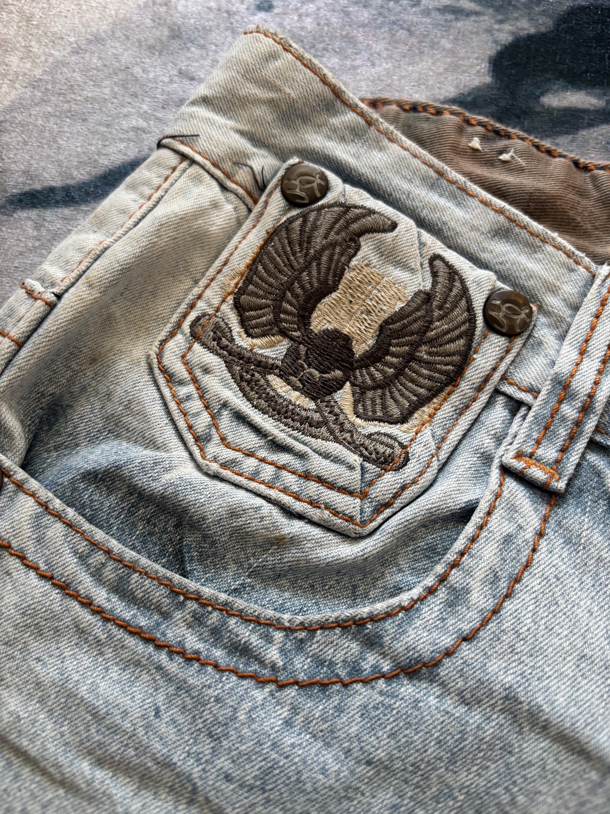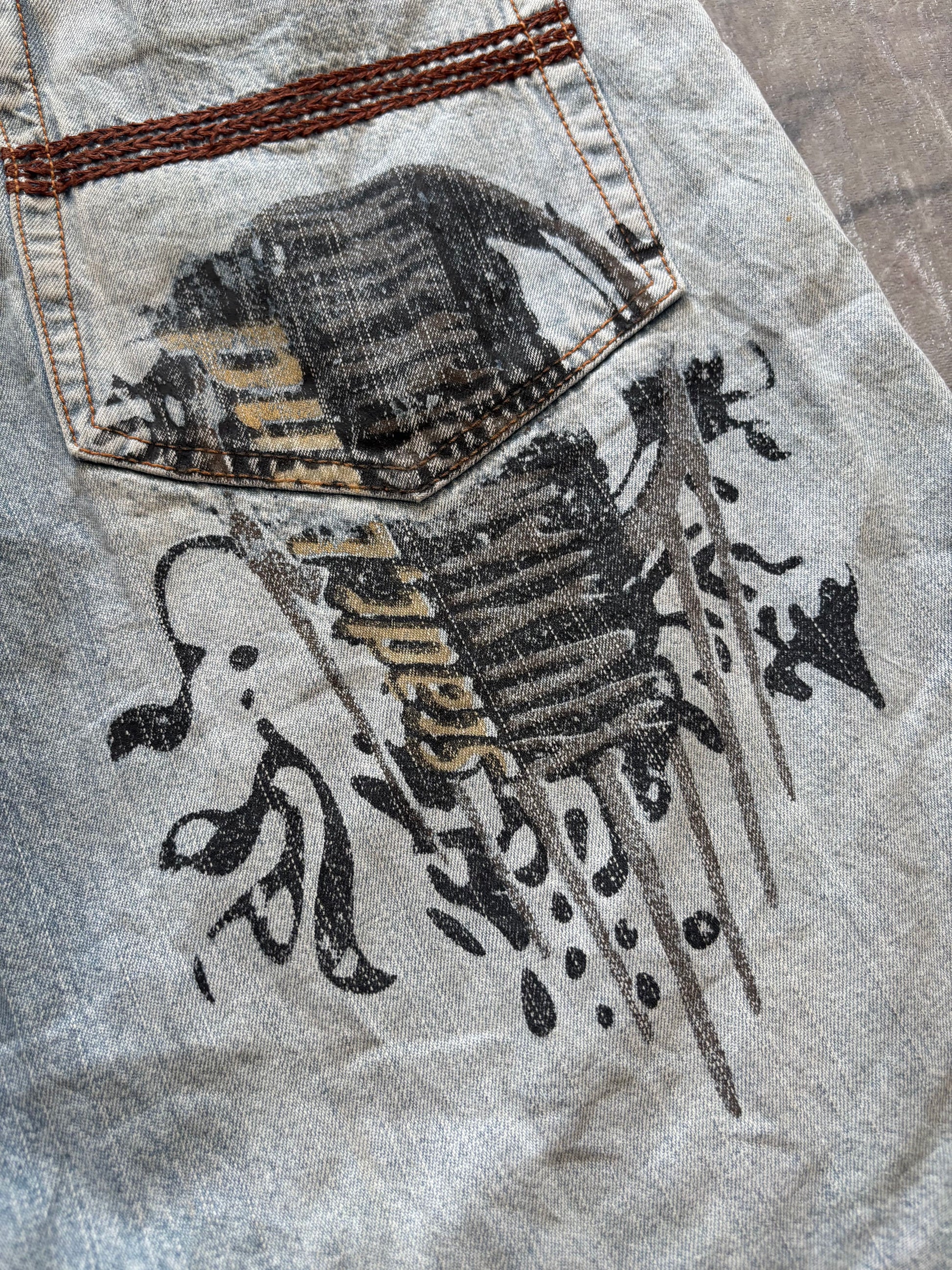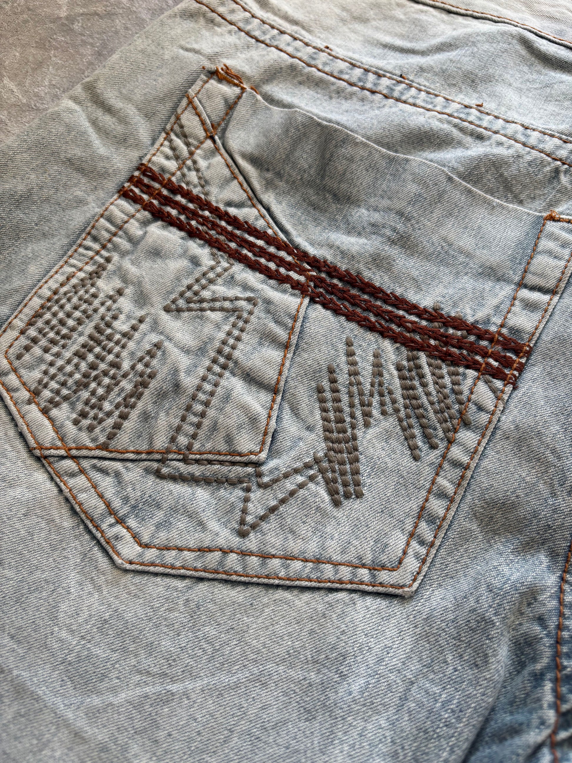 Maxet Y2K-energi fra A.Z. Jeans – et gadebrand kendt for deres vilde prints og detaljer. Disse lysvaskede jorts er pakket med broderier, emblem-tryk og patchwork, og har tydelige 2000’er-vibes à la Evisu, Ed Hardy og Rude Boys-kulturen.