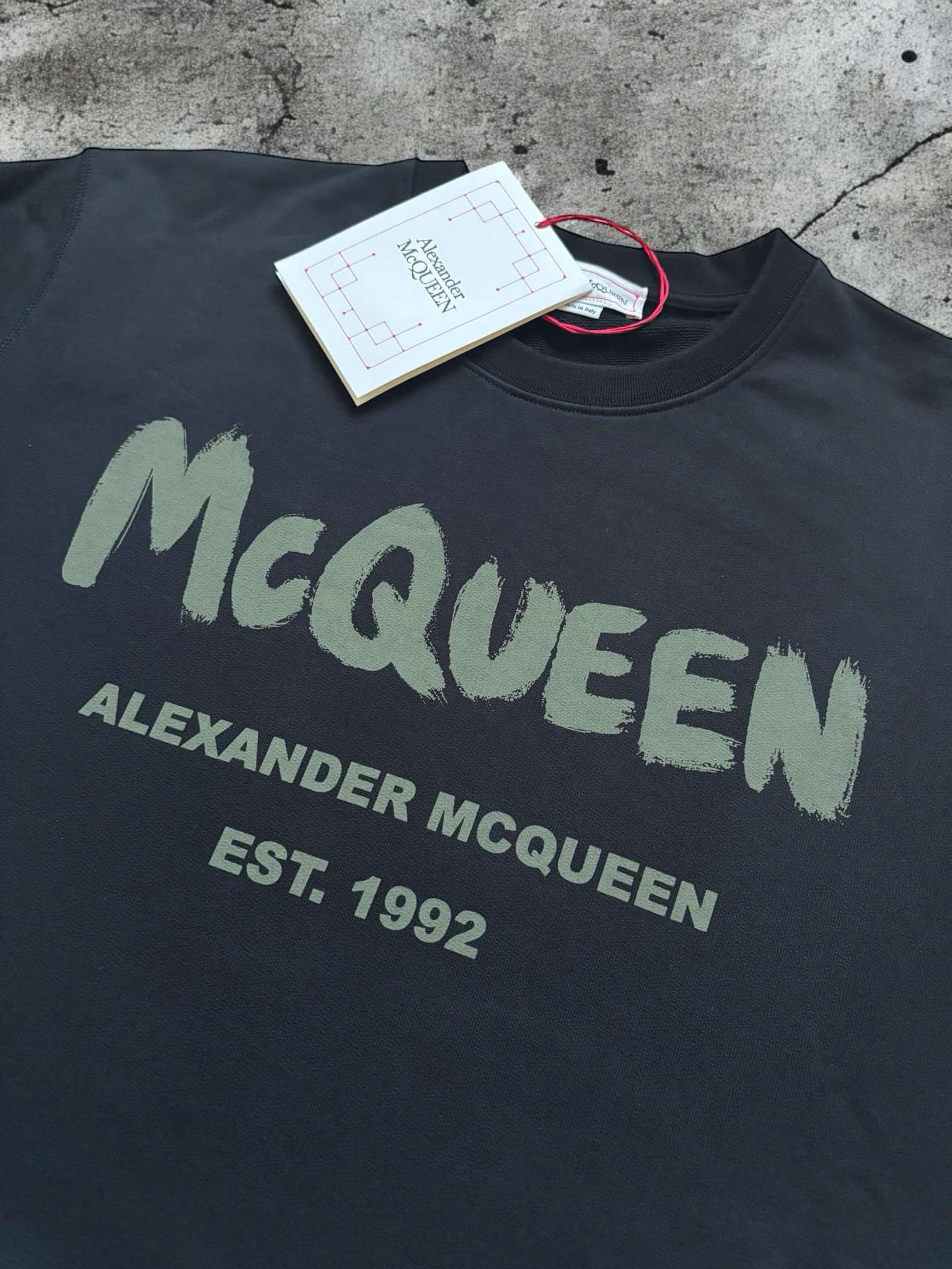 Denne Alexander McQueen sweatshirt kombinerer klassisk design med det ikoniske graffiti-logo – en stærk visuel signatur fra et af modeverdenens mest anerkendte brands.