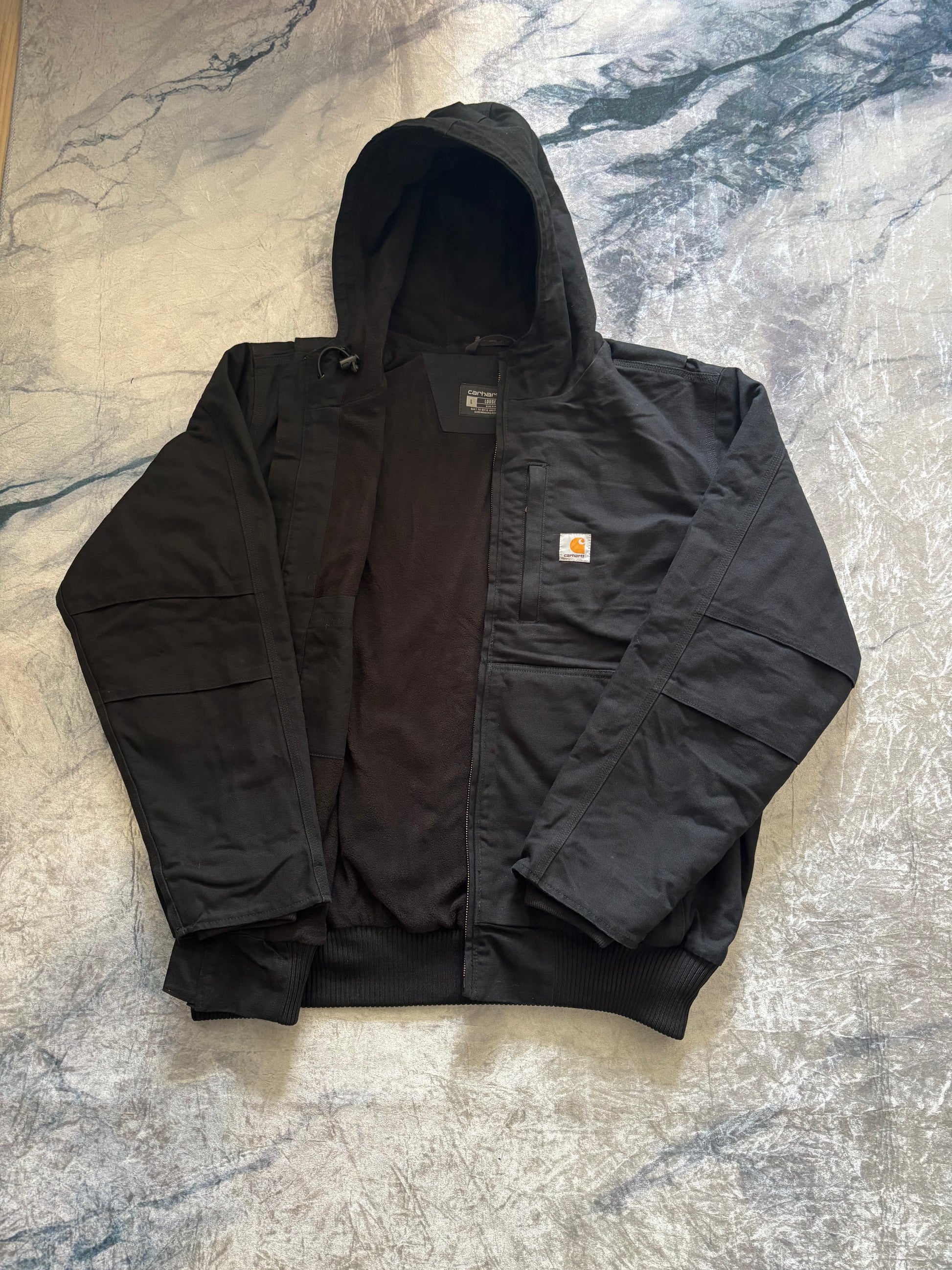 Klassisk Carhartt jakke med sort fleecefor – lavet til både funktion og stil. Den robuste duck canvas-kvalitet kombineret med den afslappede pasform og varme fleece gør den ideel til både gadebrug og udendørs brug i koldt vejr.