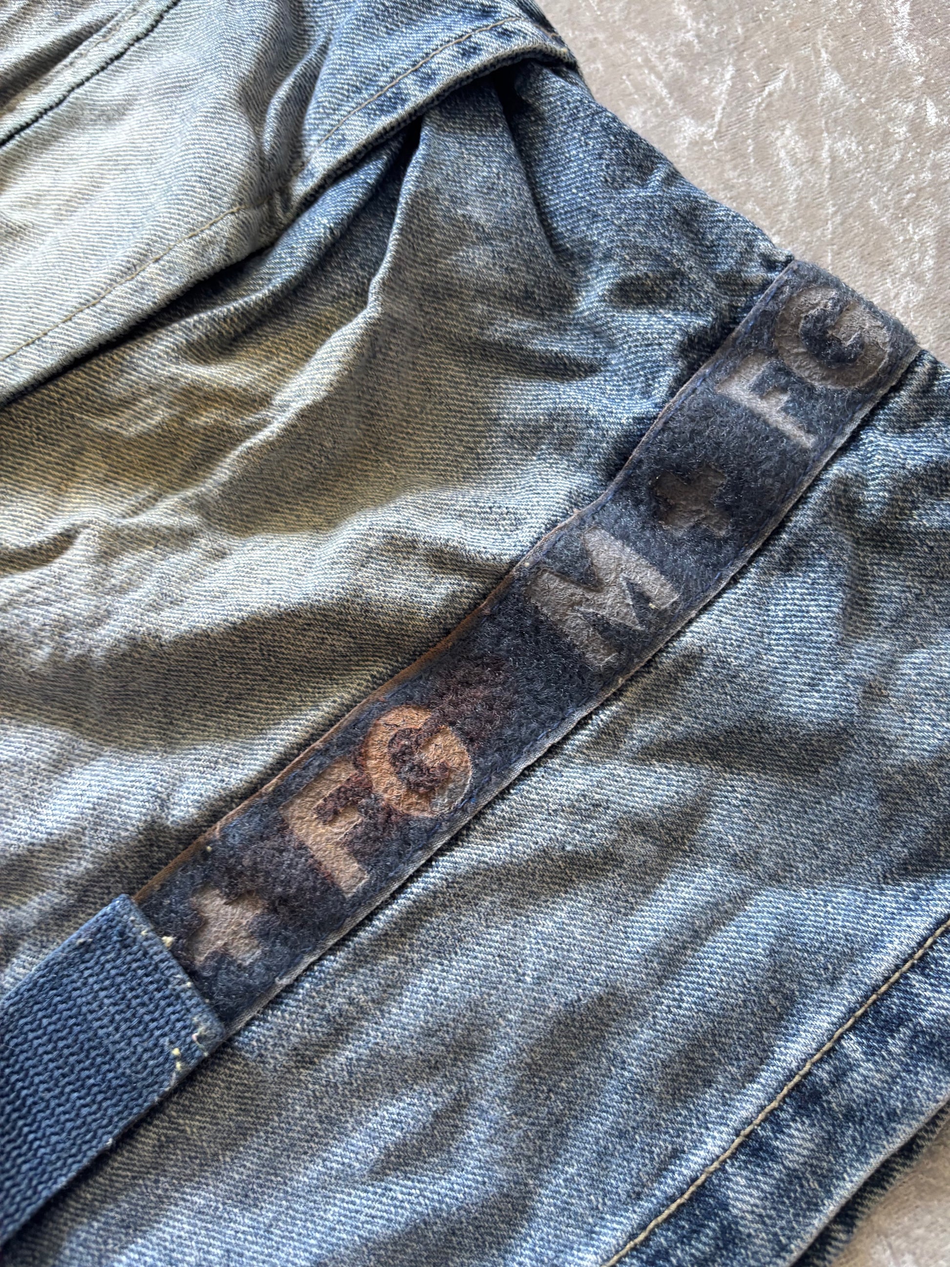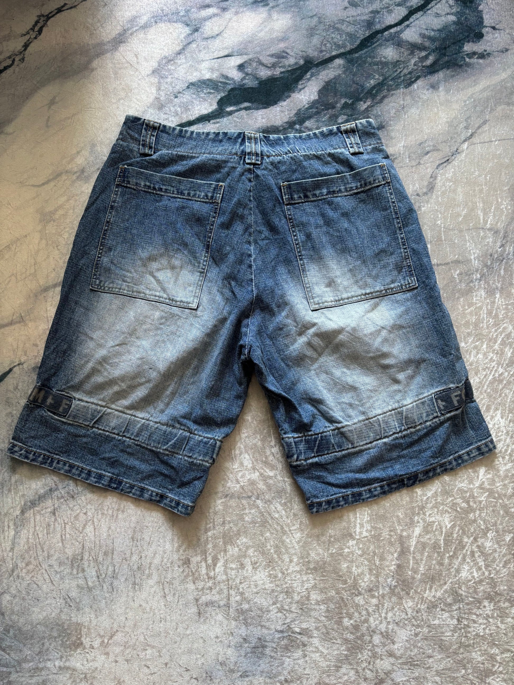 Et ikonisk techwear-piece fra Marithé & François Girbaud – kongerne af early 2000’s streetwear. Disse cargoshorts kombinerer utility og stil med slidt vask, “FG+M” print og justerbare spænder på benene. Et ægte samlerfund med niche-kultstatus.