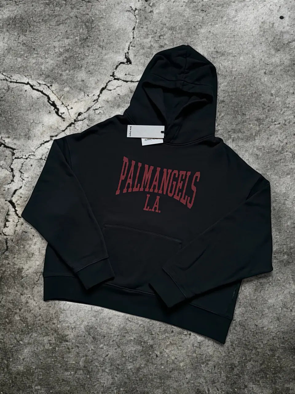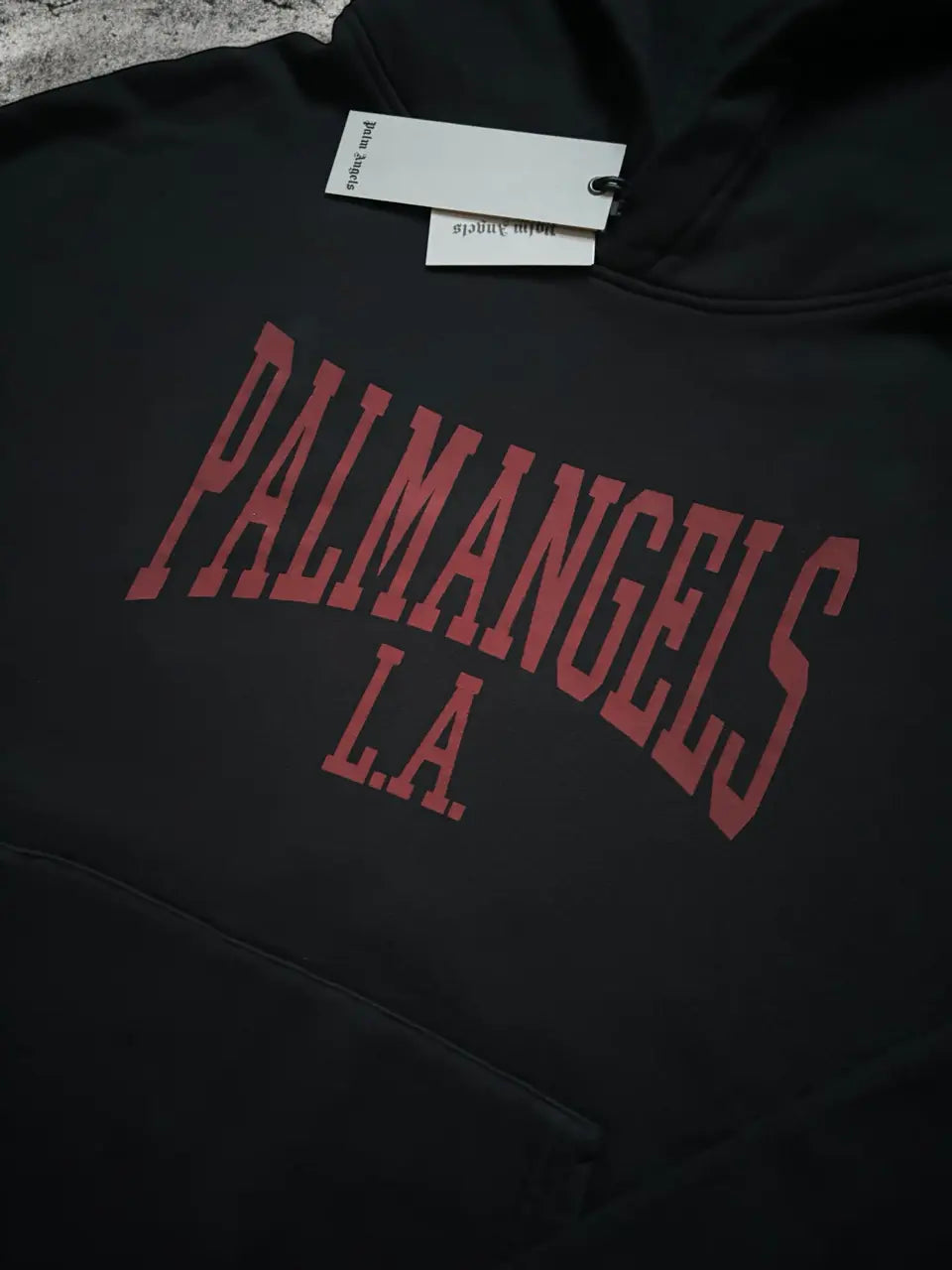 Denne model fra Palm Angels er fremstillet i blød bomuld med afslappet pasform, ribkanter og justerbar hætte. Det markante "College"-logo på brystet giver et sporty og retro-inspireret udtryk.
