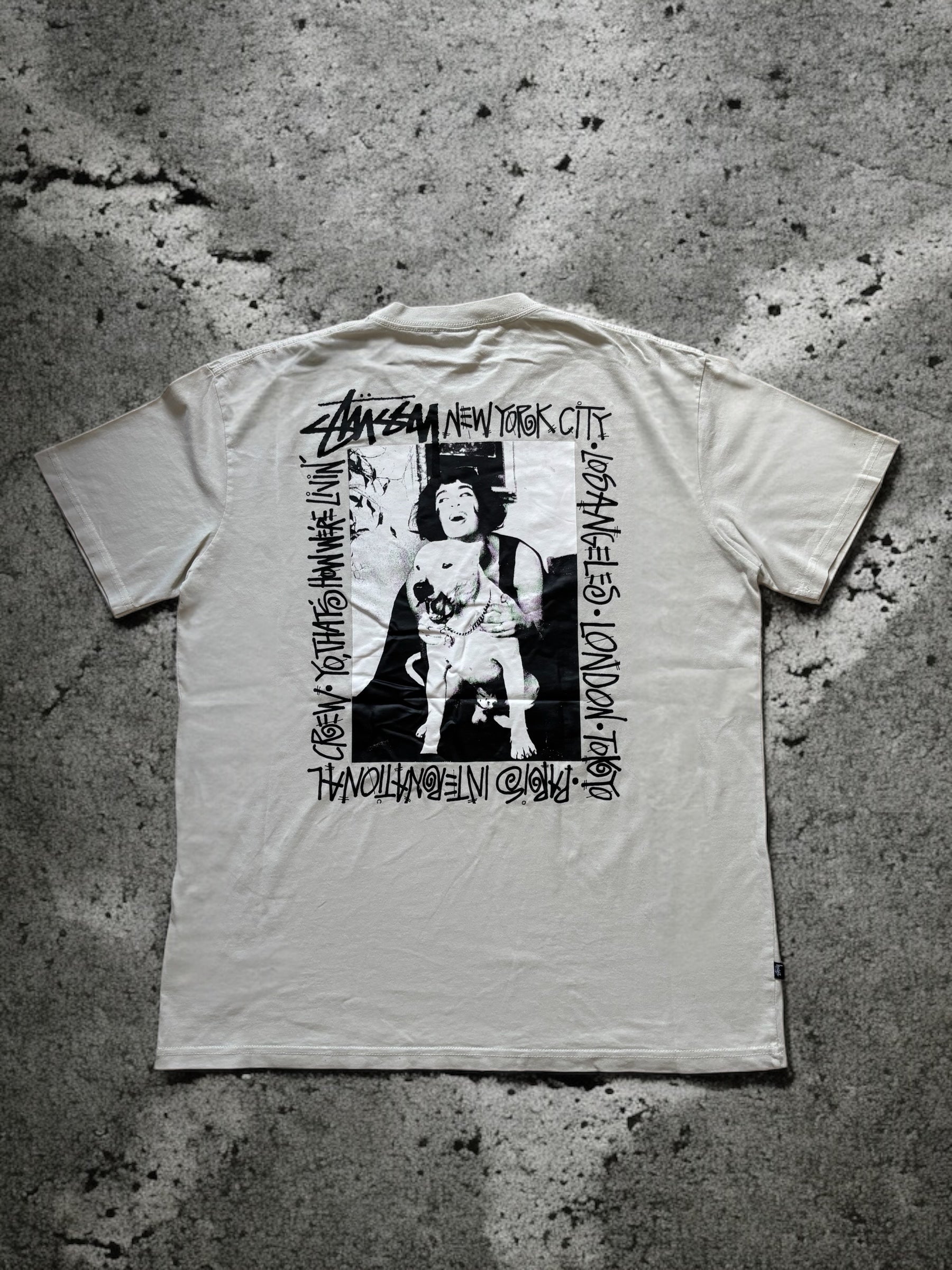 Vintage Stüssy How We're Livin’ T-shirt er en hyldest til livsstilen, der definerer streetwear. Med et markant grafisk print, der fanger essensen af Stüssys unikke vibe, giver denne T-shirt et cool og afslappet look. Den er lavet af blødt bomuldsstof og har en klassisk pasform, der gør den perfekt til hverdagsbrug, mens den samtidig holder stilen skarp.